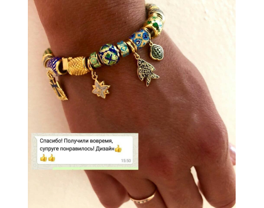 Хотела создать эксклюзивную и неповторимую вещь. Ваши вот такие изделия очень подходят для этого. Спасибо за прекрасную бусинку, смотрится на руке великолепно.
