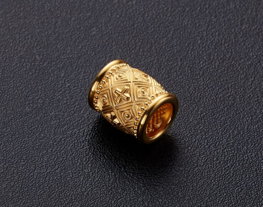 Серебряная бусина, покрытая позолотой, и отделанная узором в восточно-византийском стиле, который образуется квадратами, ромбами, прямоугольниками и декоративными вписанными в них фигурками. На этой бусине изображен ромб и крестик, что верующие трактуют как поле души человеческой, которое осенено крестом.