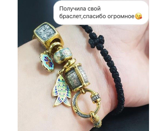 Серебряная бусина в виде рыбы, которая является древнейшим символическим обозначением Христа. Так Его изображали первые христиане. Кроме того, с рыбами связывают учеников Иисуса и просветителей, которые были рыбаками и «вылавливали» человеческие души из морских пучин.