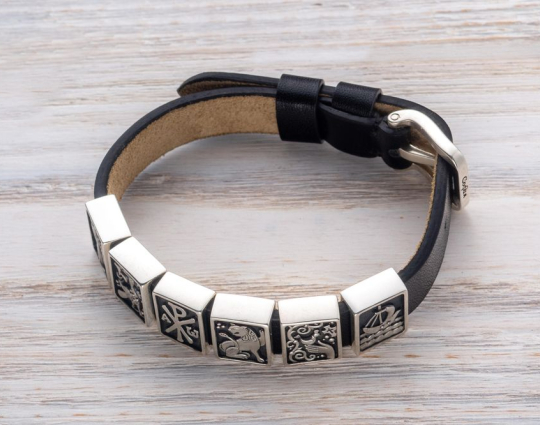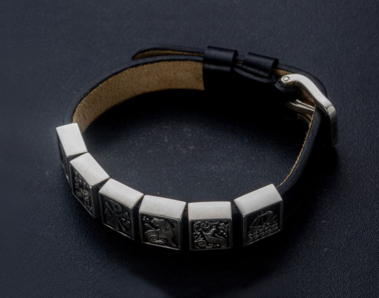 Браслет-основа выполнен из натуральной добротной кожи, а чармы и застёжка - из серебра.
