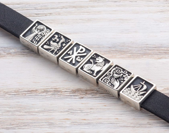 Набор бусин включает в себя: чарм «Ангел», чарм «Райская птичка», чарм «Хризма», чарм «Лев», чарм «Райская птичка», чарм «Корабль».