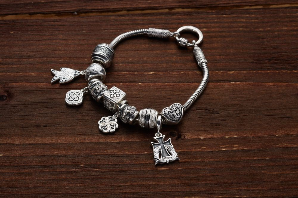 В качестве основы - браслет из серебра с родиевым покрытием и переходником.