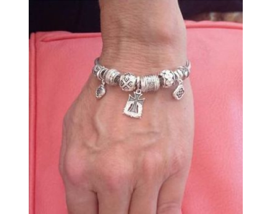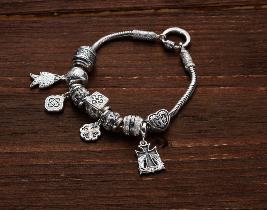 Набор бусин включает в себя: бусина «Вьюнок», подвес «Рыбка», бусина «Процветший Крест, византийский цветок», подвес «Трилистник». Эмаль, бусина «Рыбки», бусина «Равносторонний крест», подвес «Трилистник». Эмаль, бусина «Птички», бусина «Десятая молитва Ионна Златоуста», подвеска «Крест», бусина «Сердце».