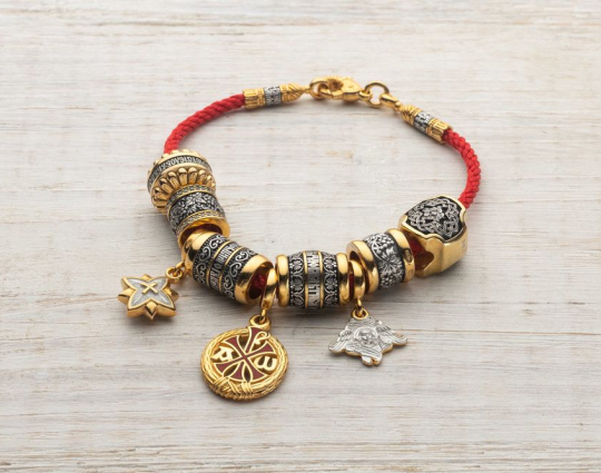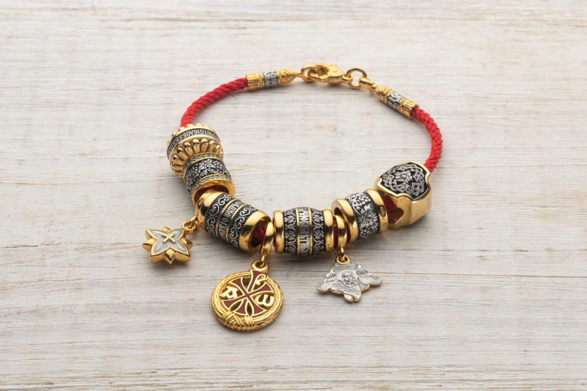 Набор бусин включает в себя: бусина «Милость», бусина «Виноградная лоза», подвеска «Хризма», бусина «Верую», подвеска «Вифлеемская звезда», подвеска «Серафим», бусина «Виноградная лоза», бусина «Ромашка», бусина «Иисусова молитва».