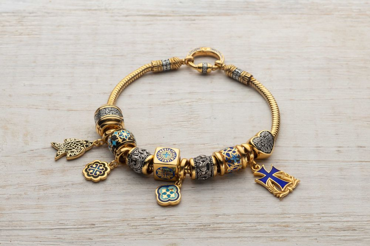 Набор бусин включает в себя: бусина «Вьюнок», подвес «Рыбка», бусина «Рождественскя ночь», подвес «Трилистник». Эмаль, бусина «Рыбки», бусина «Ангел-Хранитель», подвес «Греческий крест». Эмаль, бусина «Птички», бусина, Процветший крест. Подвес, бусина «Сердце.