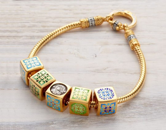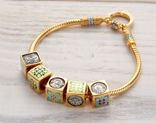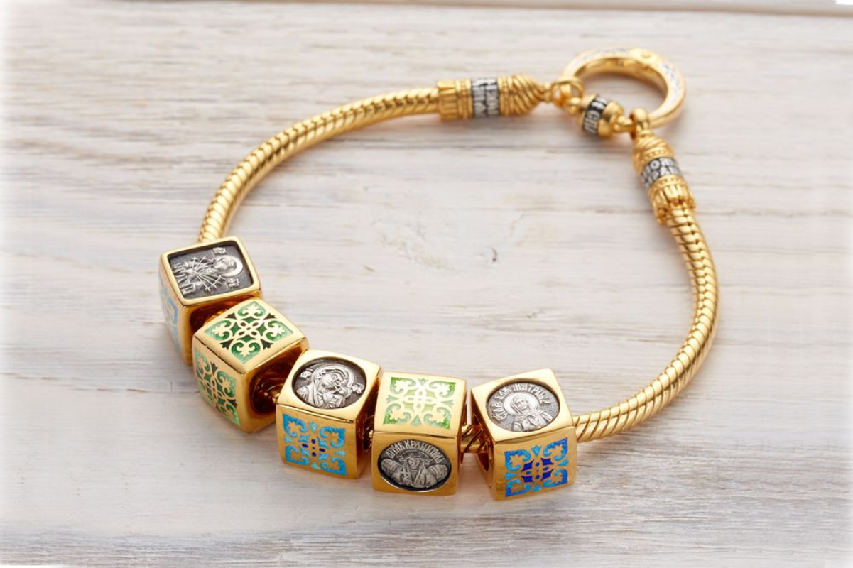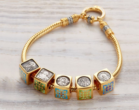 Набор бусин включает в себя: бусина «Икона Божией матери «Семистрельная»», бусина «Блаженная Матрона Московская», бусина «Святитель Николай Чудотворец », бусина «Ангел Хранитель», бусина «Казанская икона Божией Матери».