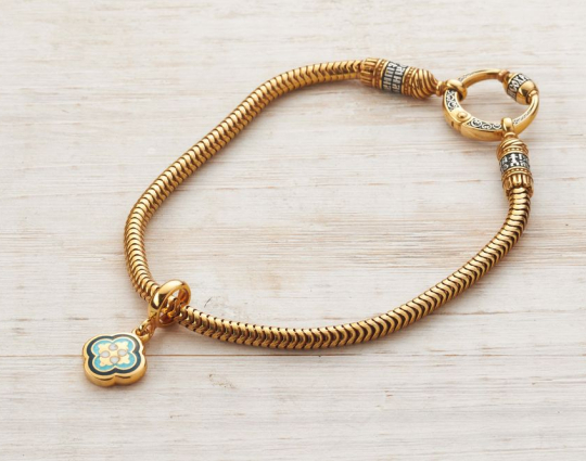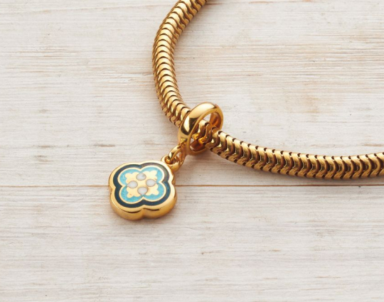 Шарм бусина «Греческий крест». | 5006_blk_blu | Серебро 925 пробы с позолотой