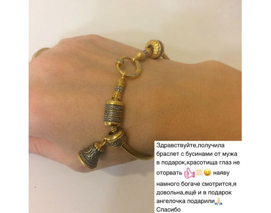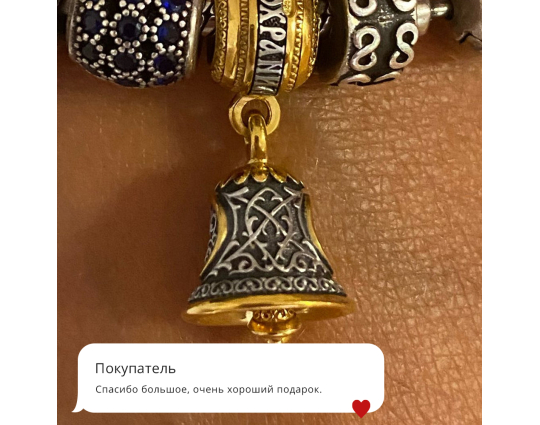 Это замечательно, что не нужна предоплата. Никогда бы не связалась с интернет – магазином. Когда получила бусину – колокольчик все сомнения сразу пропали. Оригинальный миниатюрный узор прекрасен. И слова на верхней части подвески. Он будет всегда со мной, отгонять дурное и защищать меня. Спасибо большое!