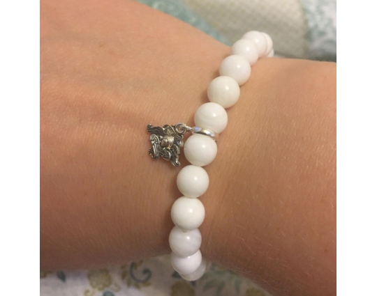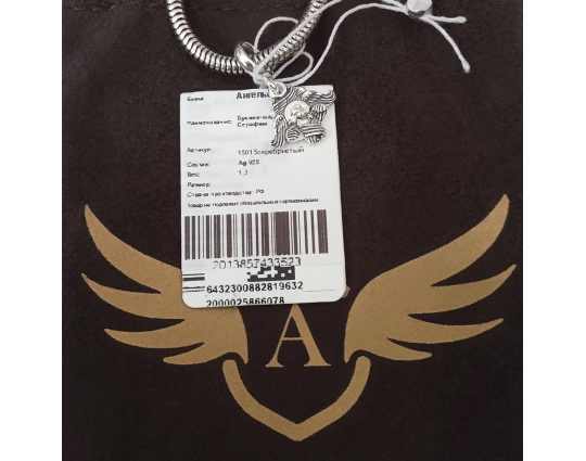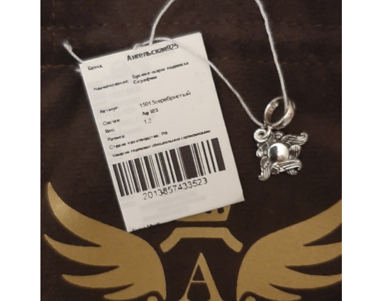 Красивая, симпатичная подвеска с шестикрылым ангелом. Ношу на руке, вместе с предидущими вашими бусинами. Как обычно, очень красиво.