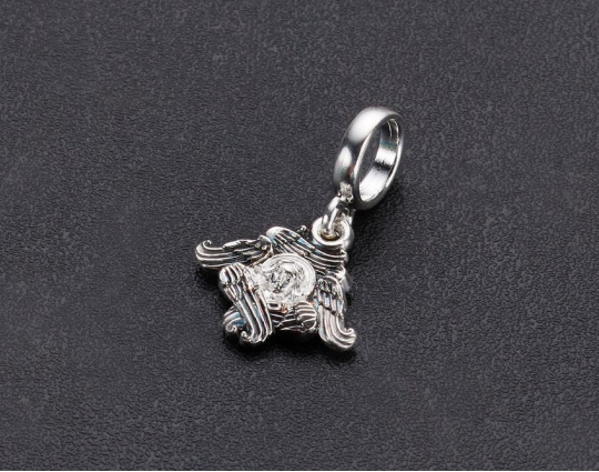 Серебряная бусина с изображением шестикрылого Серафима. Он - ангел, находящийся ближе всех к Богу. Считается, что Серафимы могут опалять огнем злых духов, нечистоту и все остальное, что может нанести вред человеку.