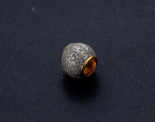 Серебряная бусина с позолотой, на корпус которой нанесены слова-обращения к Богу. Эти слова- молитва матери о самом дорогом, о детях. Ее можно читать каждый день, ведь слова звучащие из уст матери имеют особую силу.