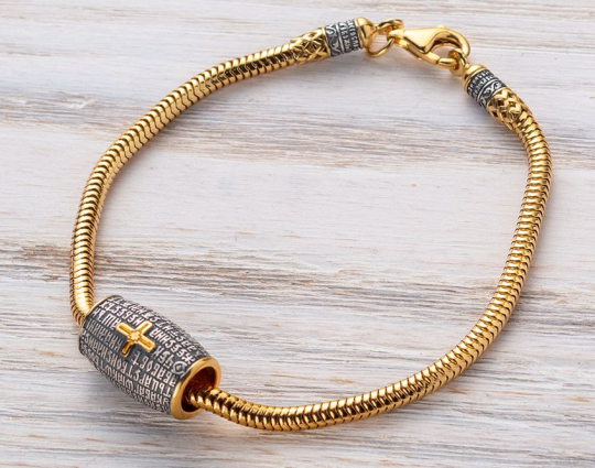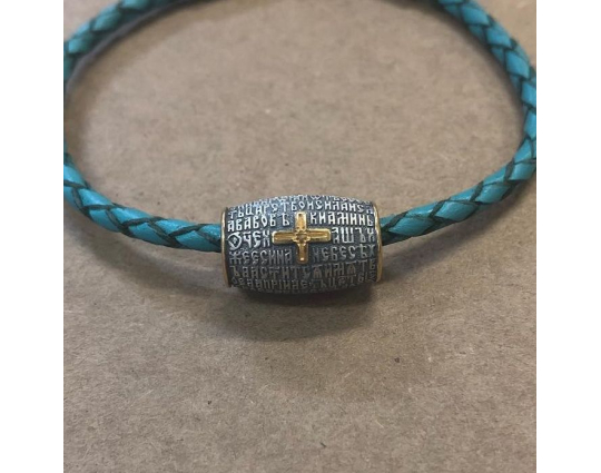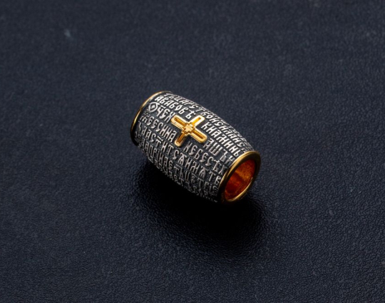 Серебряная бусина с позолотой,  на корпус которой нанесены слова, которым можно обращаться к Богу в любой ситуации. Эти слова -  молитва «Отче наш».  Считается, что ее составил сам Всевышний и именно поэтому она имеет такую большую защитную силу.