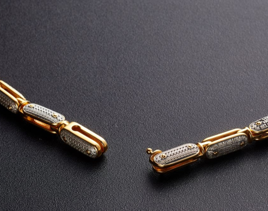 Это изделие имеет прочный линзовый замок, который крепится дополнительным звеном.