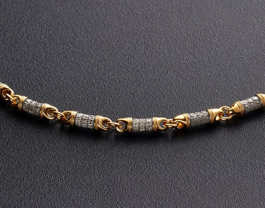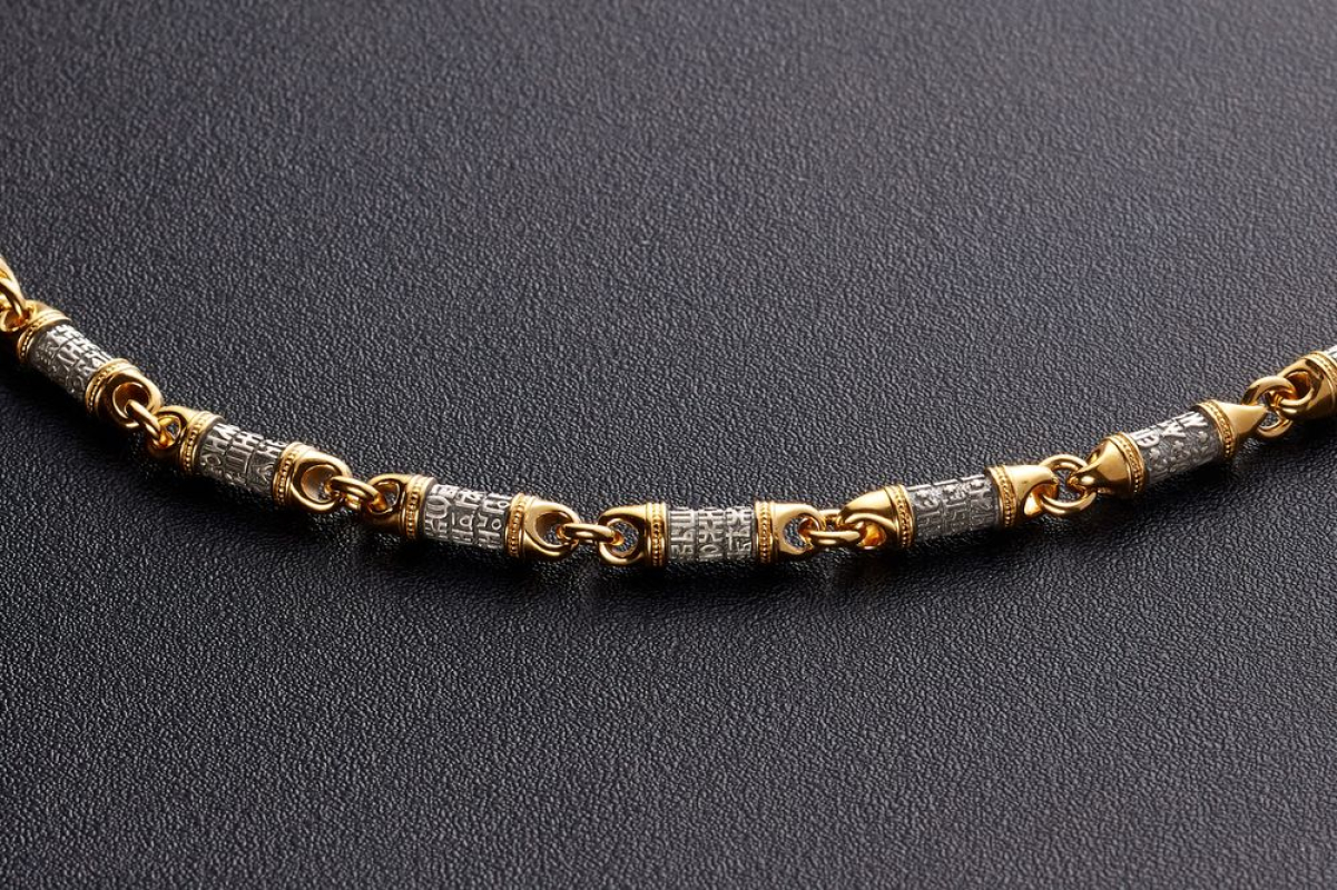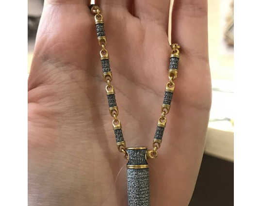 Серебряная цепь с позолоченной отделкой, состоящая из звеньев, на которых написаны священные слова 90-ого Псалома, который как бы построен в форме обращения учителя к своему подопечному или к сыну. В наставлении говорится о том, что Бог - наш помощник и защитник, к которому можно обращаться в сложных ситуациях. В последних строках вводятся слова Всевышнего, подтверждающие сказанное.