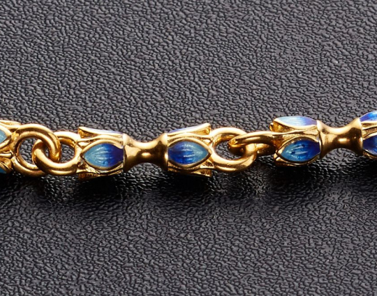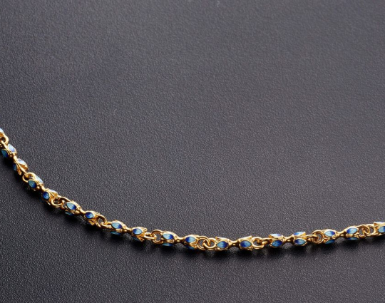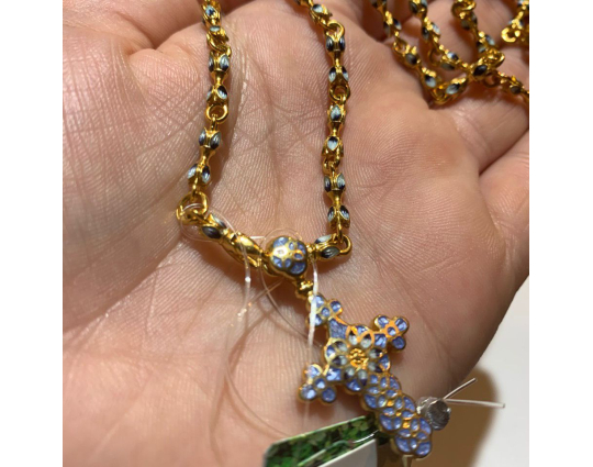 Великолепная цепочка. Эмаль со стороны выглядит, как камень в форме лепестка синего цвета. Раньше такого не видела, по этому очень впечатлило.