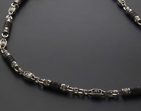 Дерево Эбен ценится из-за своих прочности и водостойкости. Поэтому изделие прослужит долгие годы. Оно прекрасно сочетается с серебром благодаря своему яркому черному цвету.