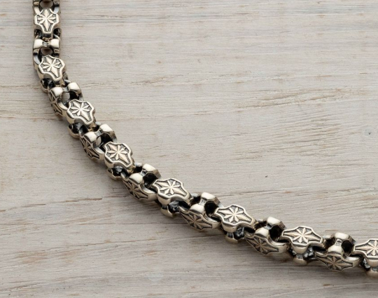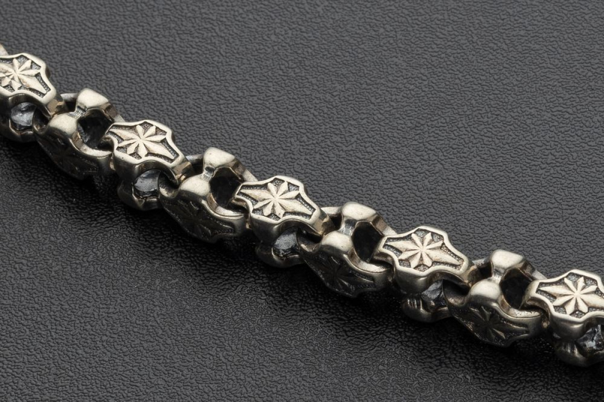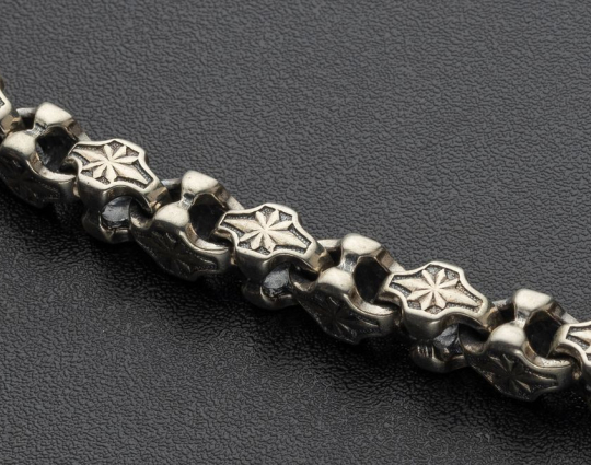 На звеньях этой цепочки из серебра 925 пробы изображена звезда. Это тот знак, который появился в небе над местом, где появился Спаситель на земле.