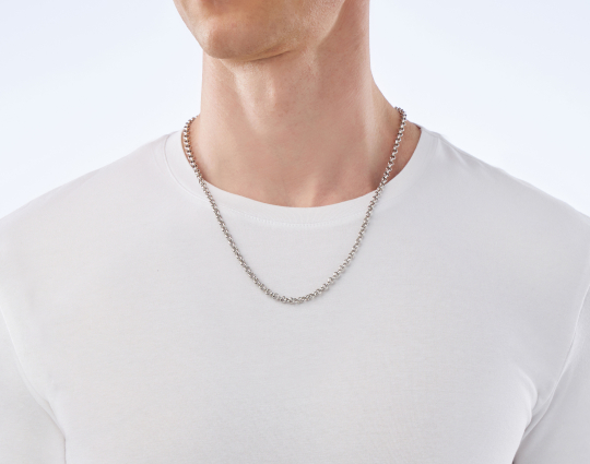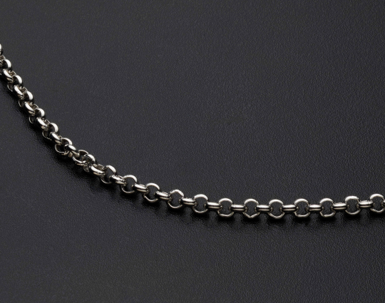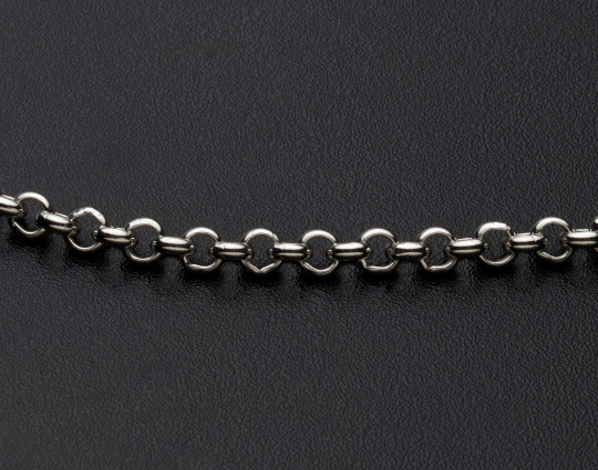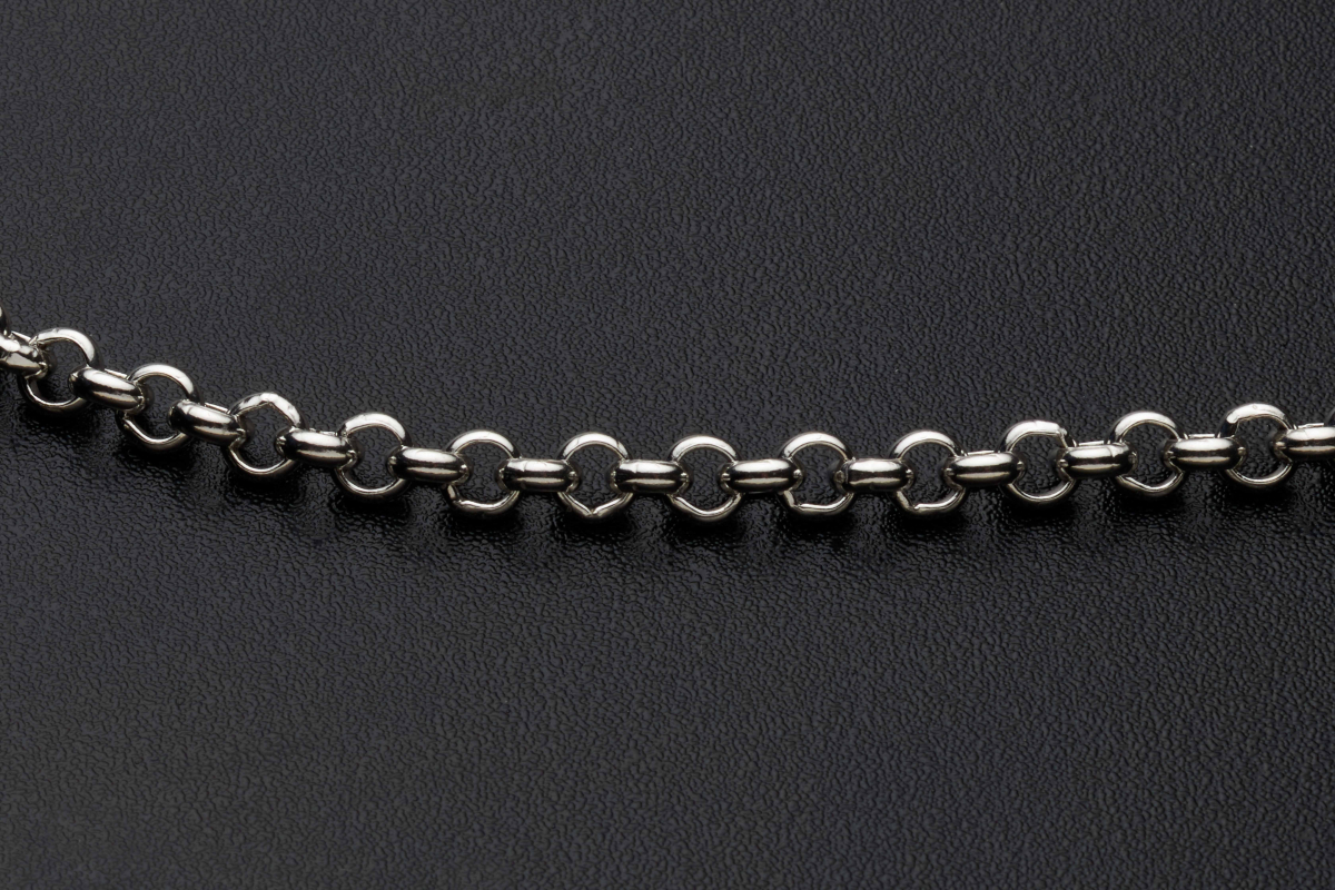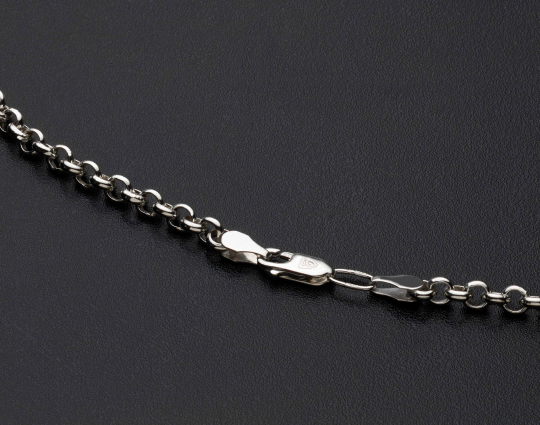 Крупная цепочка с типом плетения ролло из серебра 925 пробы с родиевым покрытием.
