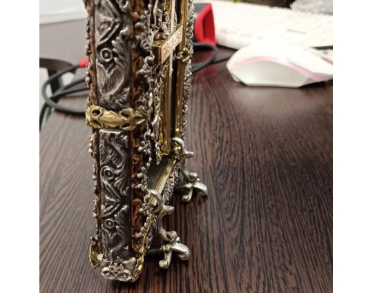 В комплекте есть серебряные ножки-подставки. Они необходимы для того, чтобы икону можно было поставить вертикально.