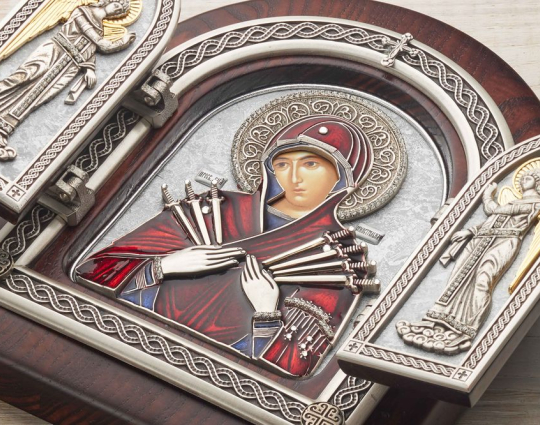 Так же семь стрел означают семь грехов, которые наносят уколы Богородице.