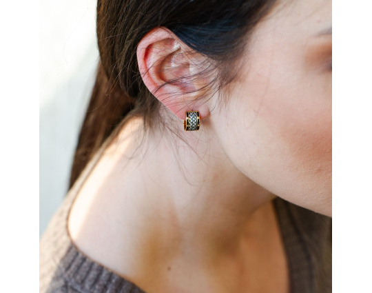 Серьги выполнены из серебра 925 пробы с позолотой. Каждое украшение выполнено в гармоничной цветовой гамме.