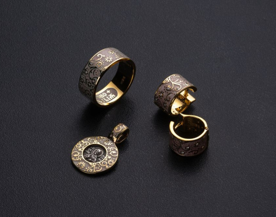 На серебряном кольце с внешней стороны изображен растительный орнамент. Внутри размещена молитва, в которой содержится просьба, обращенная к святой