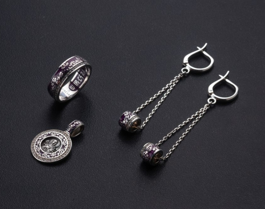 Серебряный набор «Семистрельная икона Богородицы» | 03_078A_02_078A_20_178A_bb | Серебро 925 пробы, эмаль, фианиты