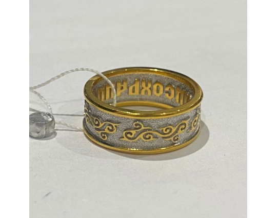 Кольцо «СПАСИ и СОХРАНИ» | 03_009B | Серебро 925 пробы с позолотой