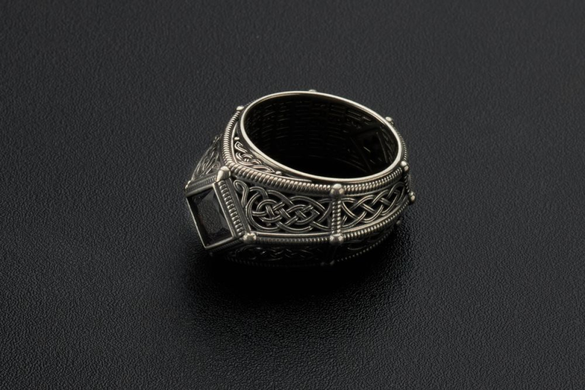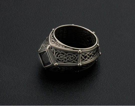 Мужское кольцо выполнено из серебра 925 пробы. В центре находится равносторонний гранат размерами 8*8 мм.