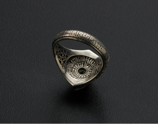 Снаружи на шинке помещена молитва о семейном счастье: «Господи Иисусе Христе, молю Тя о моем семейном счастье». Шапку кольца окружает оградительная молитва «Богородице, святая, избави мя от бед, и от нападения вражия, и от всякаго зла».