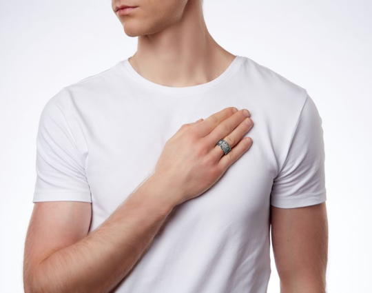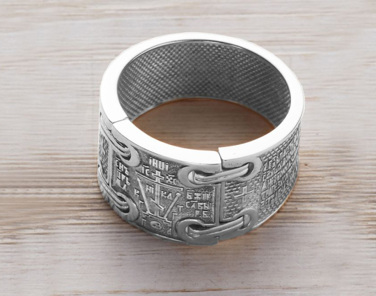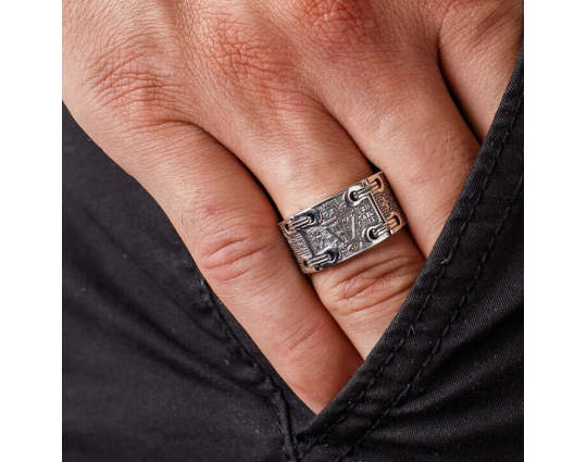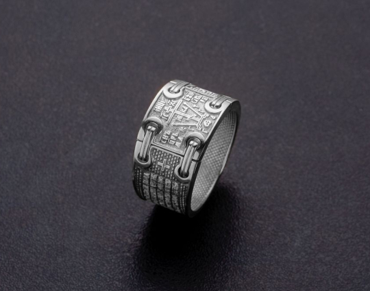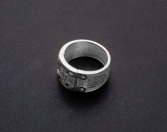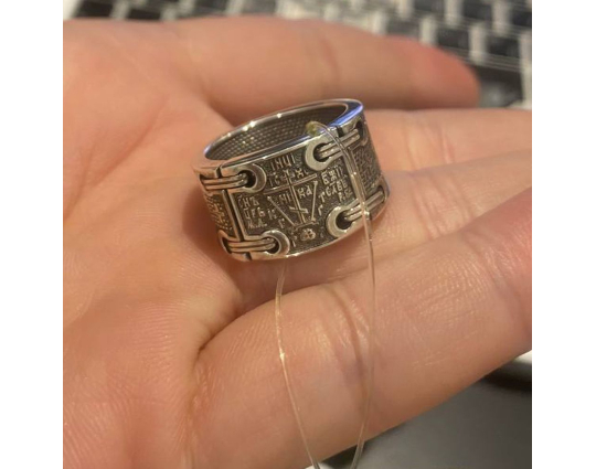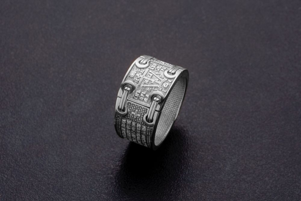 В центре кольца изображен крест схимнический или «Голгофа».