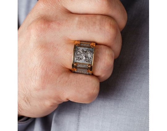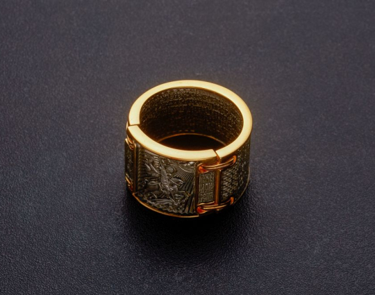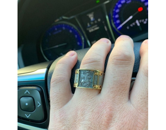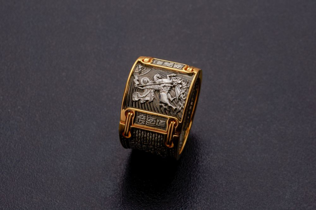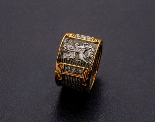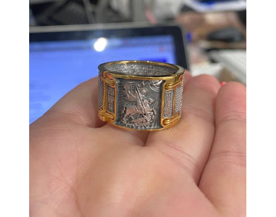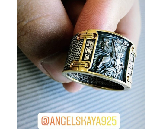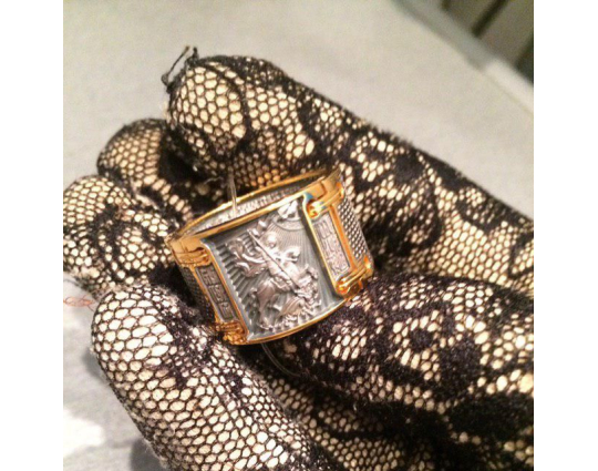 помогает трудящимся. По контуру кольцо имеет широкий позолоченный ободок.