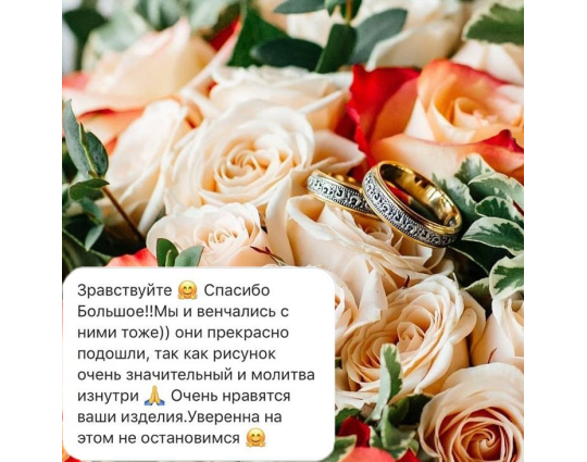 Спасибо большое за колечко!!! Теперь колечко будет жить в Москве!!! Я очень долго искала кольцо что бы молитва была внутри. Очень довольна , село идеально!!!