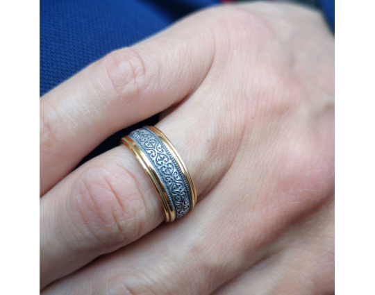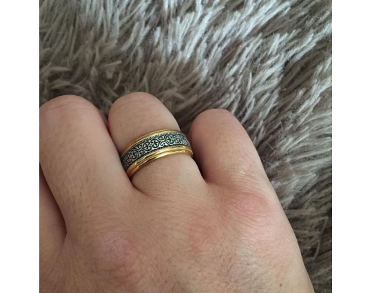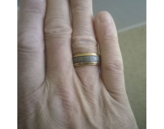 Получил сегодня кольцо. Оно действительно красивое. Необычный орнамент, великолепное сочетание цвета позолоты с чернёным серебром. Мастерам спасибо и магазин замечательный.