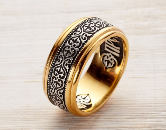 Кольцо. Орнамент Византийский цветок. Молитва Пречистой Божией Матери