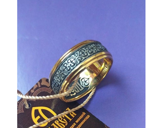 Кольцо. Орнамент Византийский цветок. Молитва Пречистой Божией Матери | 4019 | Серебро 925 пробы с позолотой