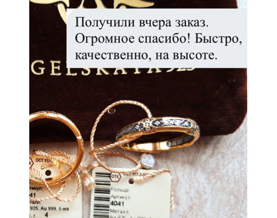 Спасибо вам огромное! Кольцо получила! В живую в 100 раз красивее! Размер идеально подошёл! Отдельное спасибо курьеру за быструю доставку и подстраивание по времени! Очень довольна заказом!
