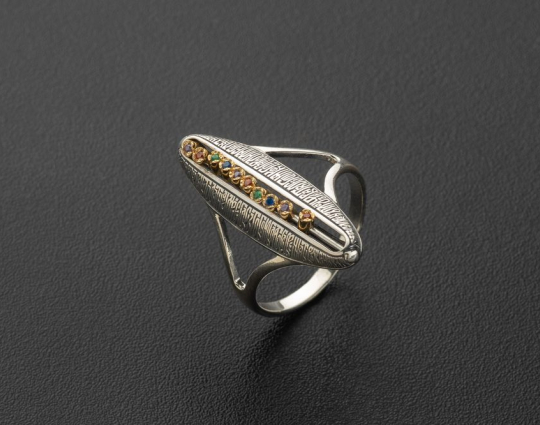 Каждая бусина украшена разноцветным камнем, фианитом. Это придает кольцу яркости и изящества.