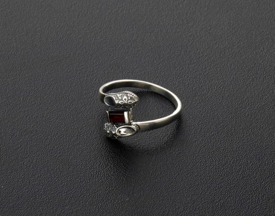 Кольцо выполнено из серебра 925 пробы. Гранат обрамляется двумя башмачками. Ношение такого символа при себе будет напоминать каждому верующему о том, что в любой нужный момент Спиридон придет, поможет и благословит.