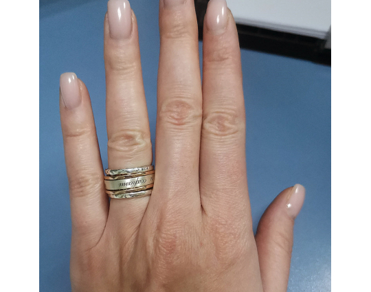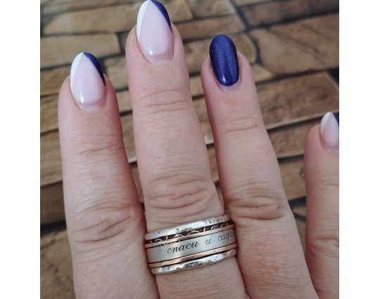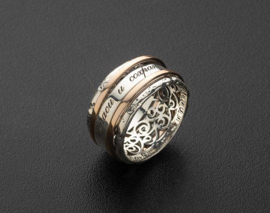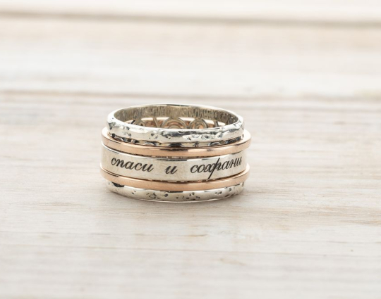 Кольцо выполнено из серебра 925 пробы. В центре кольца находится надпись "Спаси и Сохрани". Это сильная молитва, короткая, но очень важная для любого человека, который доверяет свою судьбу на милость Господа и надеется на его помощь и защиту.