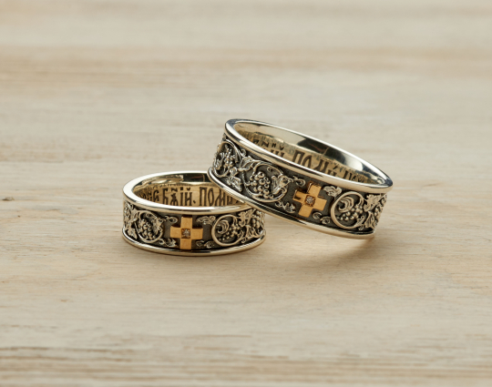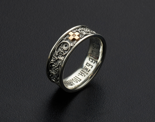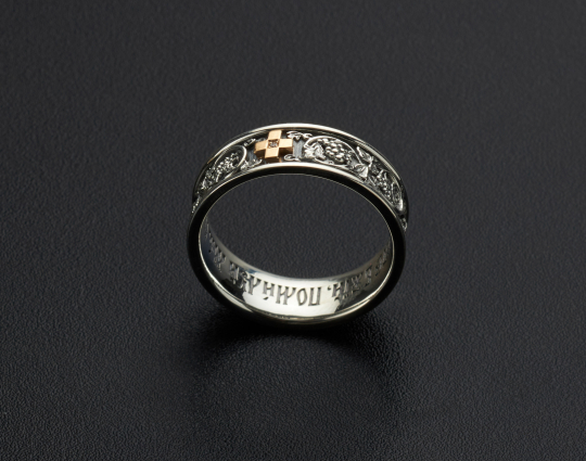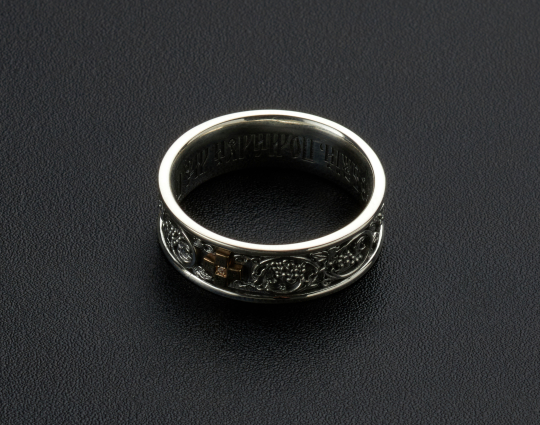 На внутренней стороне кольца нанесена молитва "Господи, спаси и сохрани".