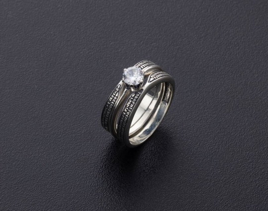 На кольце находится текст молитвы «Живый в помощи Вышняго...».  Слова из псалома 90 написаны пророком Давидом, его читают в сложных ситуациях и при трудностях, он придаёт сил в минуту отчаяния.