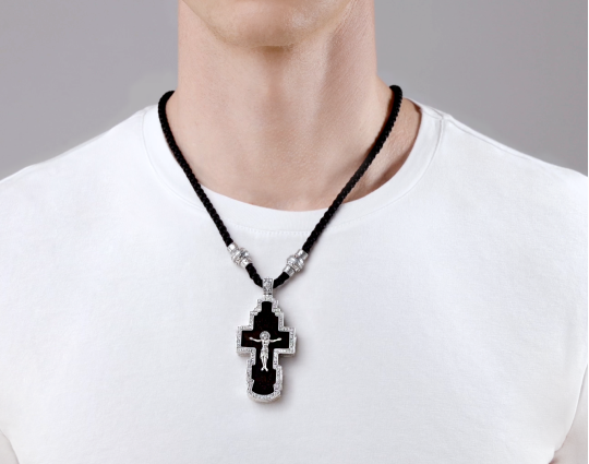 нательный крестик с распятием из серебра имеет символическое значение, особую