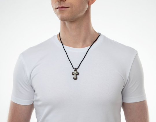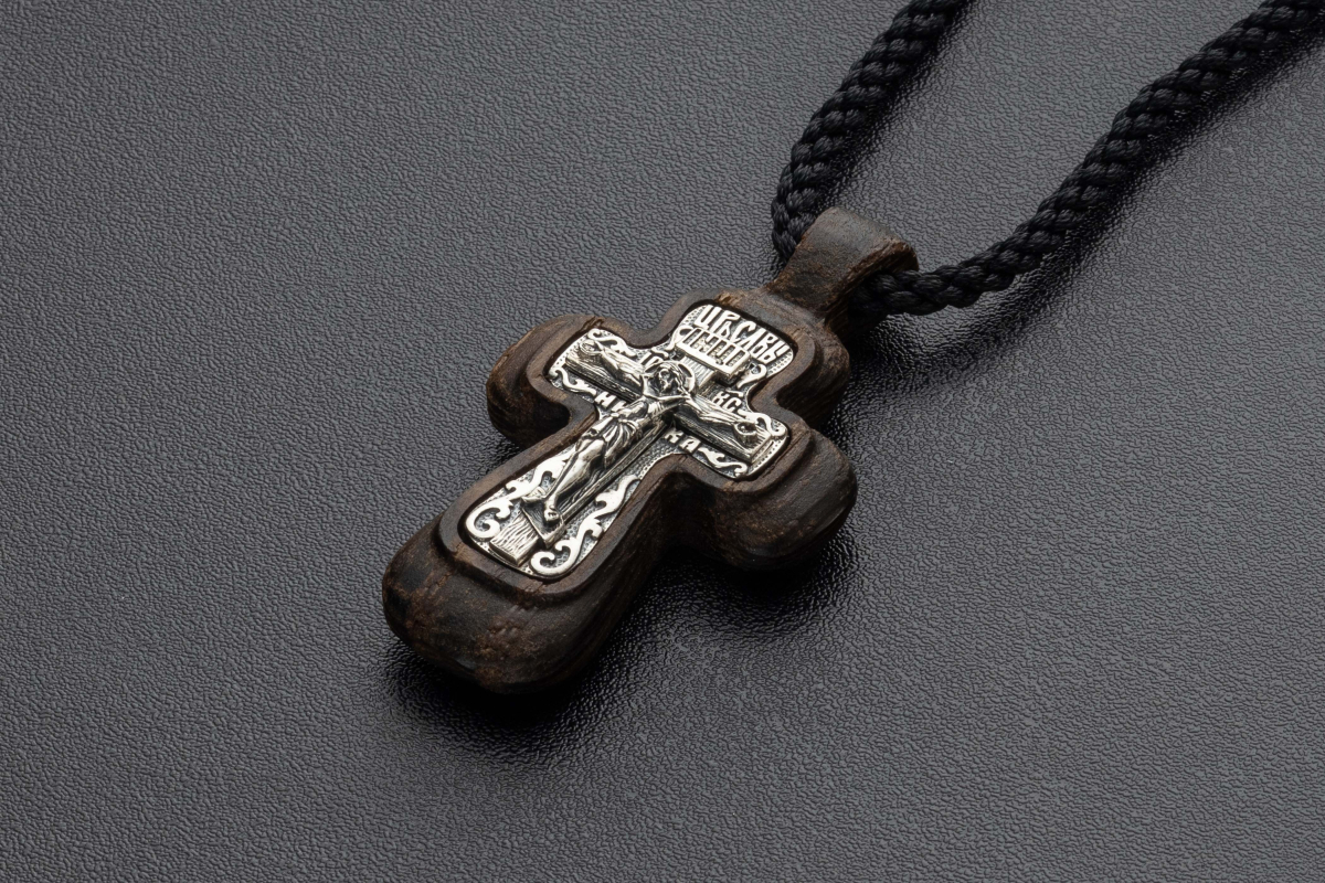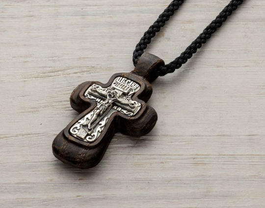 Сочетание дерева и серебра всегда смотрится строго, но элегантно. Деревянный нательный крестик с распятием из серебра имеет символическое значение, особую значимость. Деревянная часть воспринимается как напоминание о Животворящем Кресте. Это как источник боли и страданий для Христа, так и спасение для любого верующего.