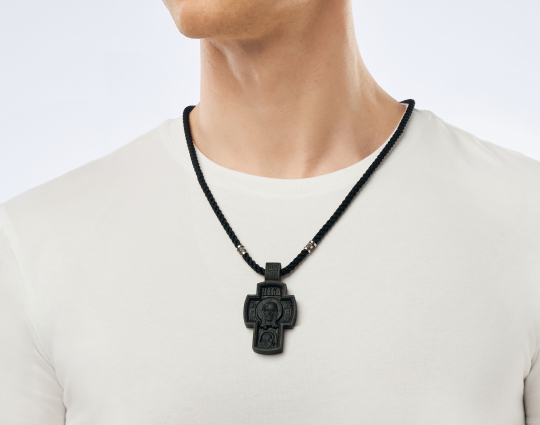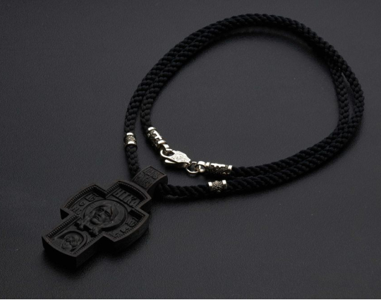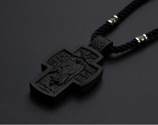 Православный крест с Архангелом Михаилом и Спасом Нерукотворным | g043 | Серебро 925 пробы, нейлон, граб