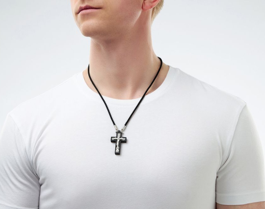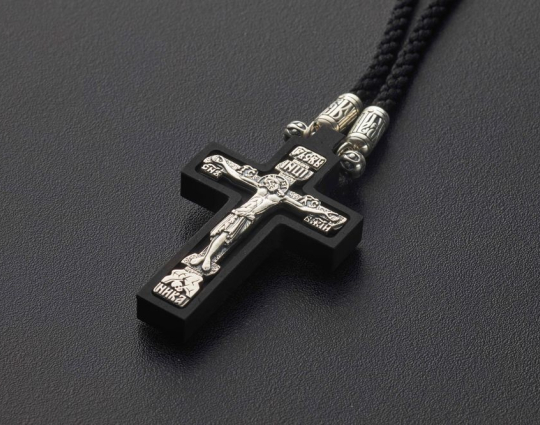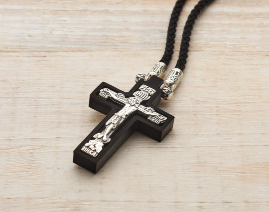 Сочетание дерева и серебра всегда смотрится строго, но элегантно. Деревянный нательный крестик с распятием из серебра имеет символическое значение, особую значимость. Деревянная часть воспринимается как напоминание о Животворящем Кресте. Это как источник боли и страданий для Христа, так и спасение для любого верующего.
