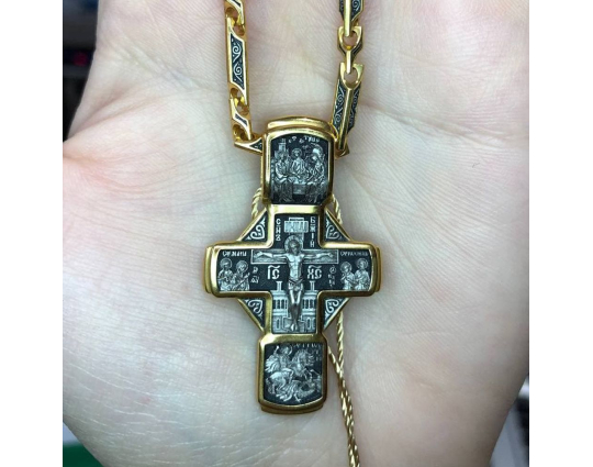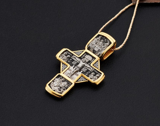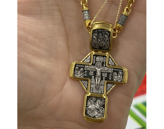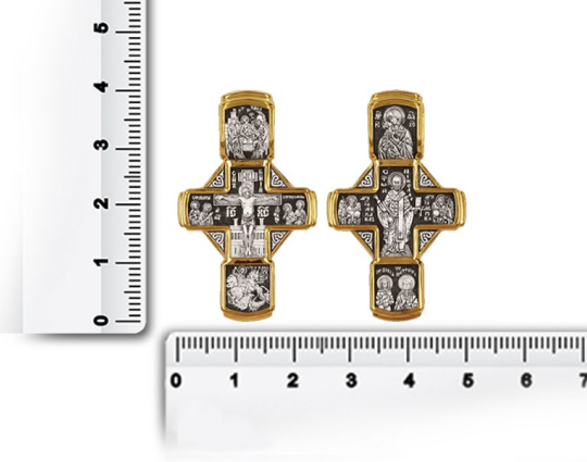 Крест «Распятие Христово с предстоящими. Святая Троица» | 8246-nepodv | Серебро 925 пробы с позолотой