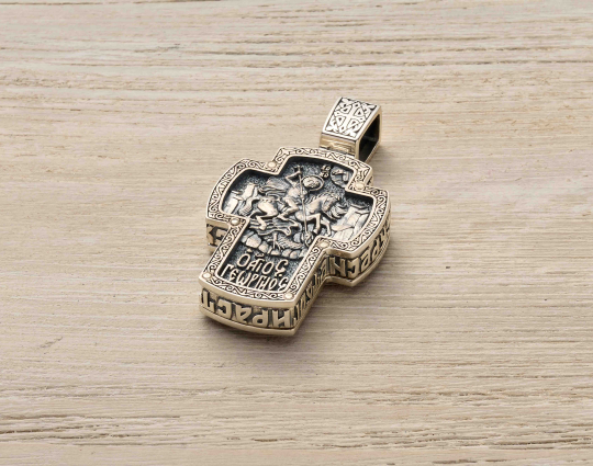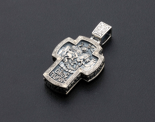 Православный крест из серебра с Распятием и образом святого Георгия Победоносца.