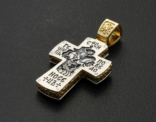 Православный крест из серебра с позолотой с Распятием и образом святого Георгия Победоносца.