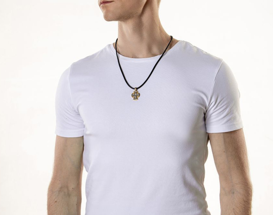 Быть верными Божьим законом каждому из нас помогает Ангел-Хранитель. Он появляется рядом с каждым человеком во время Крещения и сопровождает его до конца жизни, помогая преодолевать трудности и неприятности. Его образ помещен в центральной части нательной стороны креста. Кроме Ангела-Хранителя помощь каждому человеку готовы оказать и Святые, поэтому рядом с образом Ангела изображены Николай Мирликийский и Сергий Радонежский.